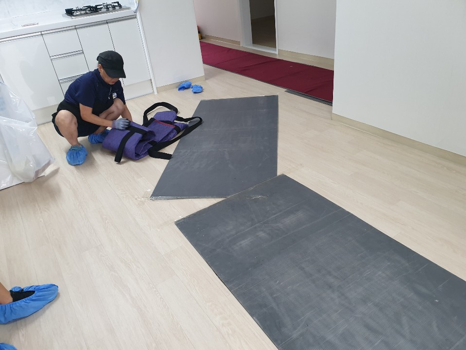 사다리로 짐을 올리는데도 바닥에 플라스틱인지 무언지를 다 깔고 저희 바닥에 흠집이 날까 봐
